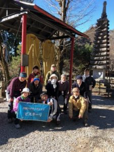 ◎ 寒さ対策で重ね着をして家を出ました、朝の冷え込みが厳しいと思い、早歩で駅まで歩いたら、じんわりと体が暖かくなり、ホッカイロは使用せずすみました。吾野駅下車したら雪もなく、川越は2日前に雪が降っていた為、冬装備(アイゼン・ストック)の準備しましたが登山道は乾燥して歩きやすい状況でした。子ノ権現は数回行ってますが鐘を突くのは初めてで、鐘の余韻に心が癒され感動しました。太陽の下で昼食もゆっくり過ごし、子ノ権現で大勢で飲む甘酒は美味しかった。天候に恵まれ足並みがそろい標準タイムより早く駅に着き怪我もなく初のサブリーダーお疲れ様でした。 S.K 邦